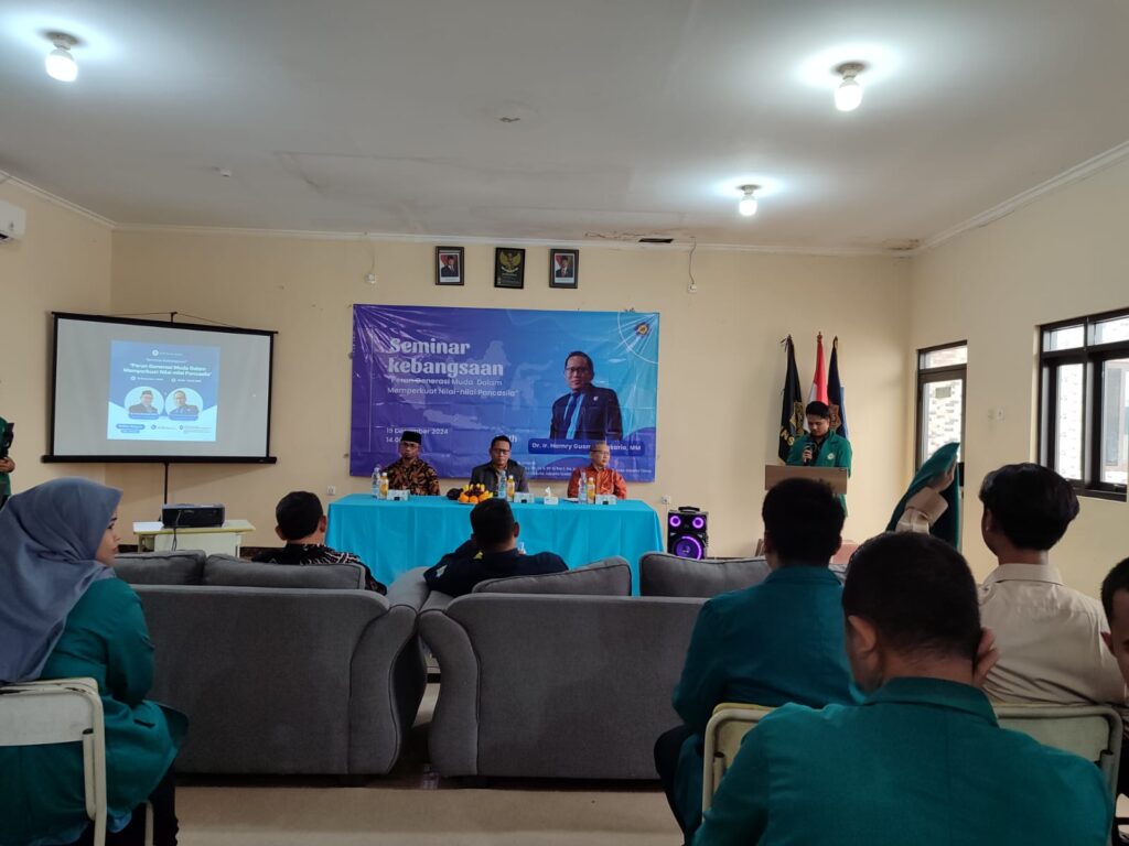 Seminar Kebangsaan di buka oleh Wakil Ketua III Bidang Kemahasiswaan (Dr. Asep Kusnadi,M.Pd), mewakili Ketua STIT INSIDA yang berhalangan hadir. Selanjutnya dalam seminar tersebut menghadirkan pembicara tunggal Dr. Ir. Hamry Gusman Zakaria, MM, yang merupakan salah satu dosen LEMHANAS RI dan juga salah satu anggota Pusat Pendidikan Wawasan Kebangsaan KESBANGPOL Provinsi DKI Jakarta. Dalam materinya beliau menyampaikan pentingnya mahasiswa Gen-Z memahami sejarah akan perjuangan para tokoh pendiri negara Indonesia yang melahirkan falsafah Pancasila sebagai falsafah kehidupan berbangsa dan bernegara. Dan yang lebih penting lagi bahwa Pancasila dirumuskan oleh para Ulama Islam seperti KH. Wahid Hasyim (NU), Haji Agus Salim, Mohamad Hatta, Ir. Soekarno, dan lainnya. Selain menyampaikan nilai-nilai Pancasila, narasumber juga memberikan contoh perbandingan dengan beberapa negara di Asia, seperti Jepang, China, akan penerapan nilai Pancasila yang sudah diterapkan sejak usia dini (TK/ AUD), misalnya sekolah SD sudah tidak diantar orang tua, menyebrang sendiri, kegiatan harus antri, begitu pula di usia TK anak sudah diperkenalkan dengan belajar sains.