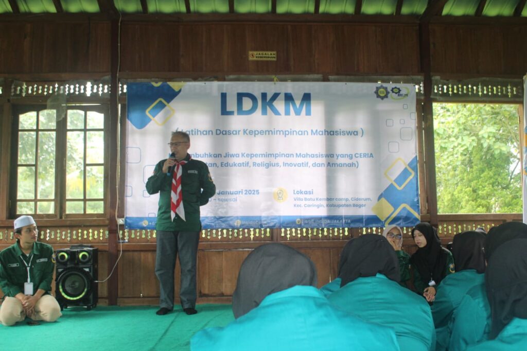 Kegiatan LDKM STIT INSIDA 2025 dibuka oleh Wakil Ketua III Bidang Kemahasiswaan (Dr. Asep Kusnadi, M.Pd) mewakili Ketua STIT INSIDA yang berhalangan hadir. Adapun tempat kegiatan dipusatkan di Villa Batu Kembar Cidaung, Cikereteg Bogor (25 – 26 Januari 2025). Selanjutnya tim instruktur yang diterjunkan dalam kegiatan LDKM STIT INSIDA tahun 2025 adalah dari TNI Infantri Angkatan Darat yang bermarkas di Cilodong Bogor dan didukung oleh dua narasumber dari Kampus STIT INSIDA, yaitu Wakil Ketua III Bidang Kemahasiswaan (Asep Kusnadi) dan Kaprodi PGMI (Kosim, M.Pd.I).